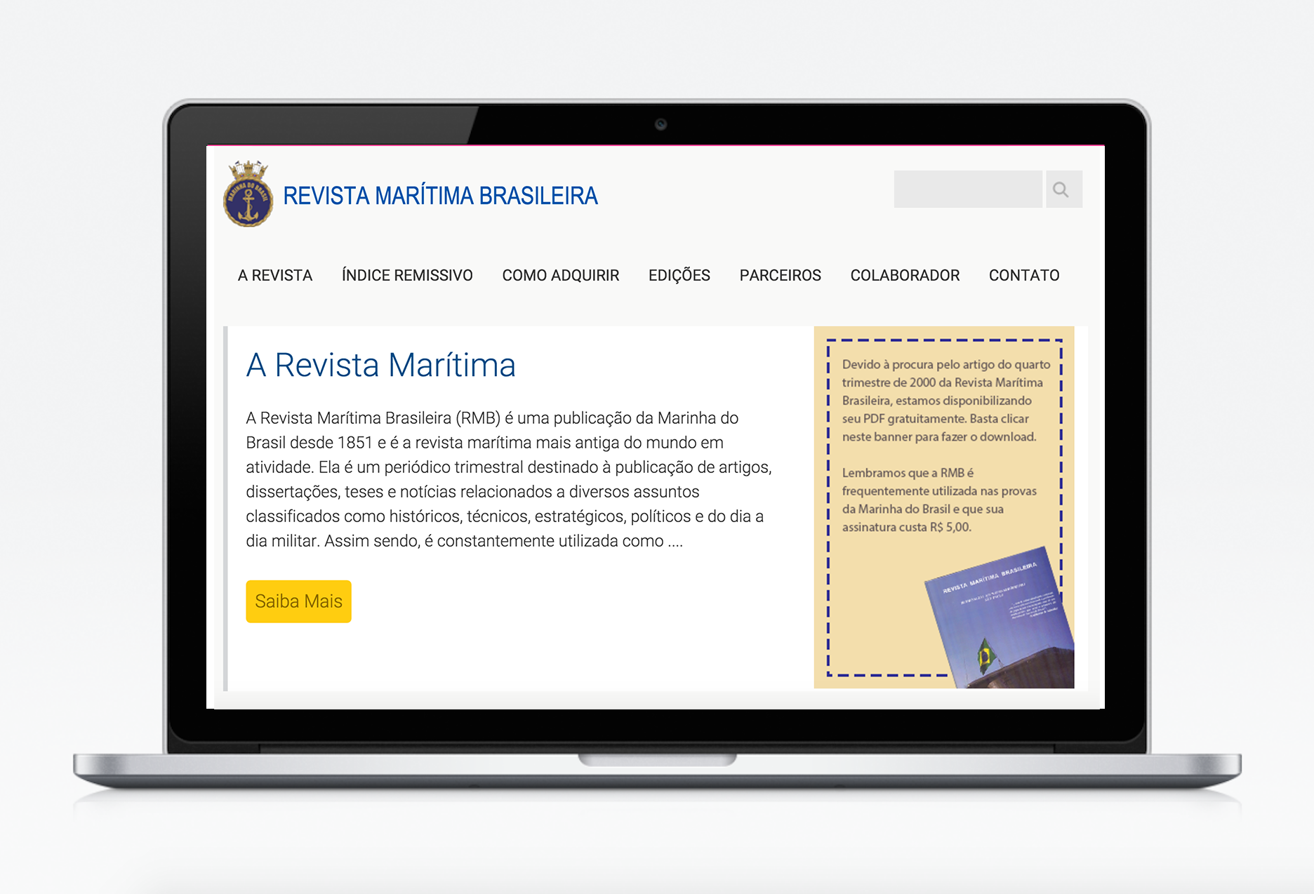 Desenvolvimento do site e sistema de gerenciamento de edições da Revista Marítima Brasileira.